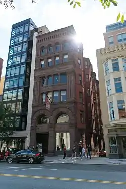 It was designed by Glenn Brown in 1890, and is an example of Romanesque architecture. The fire proof steel frame brownstone was built for the National Union Fire Insurance Company.[3]