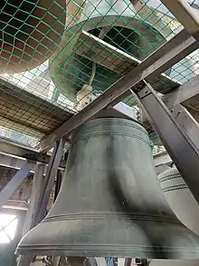 At the time of dedication the 49 bells ranged from one weighing a shade more than 4 kg with a diameter of 170 mm and 140 mm high, up to one weighing 5 tonnes and measuring 2 m by 1.6 m. Their total weight was more than 30 tonnes and they cost £11,000.[34][35]
