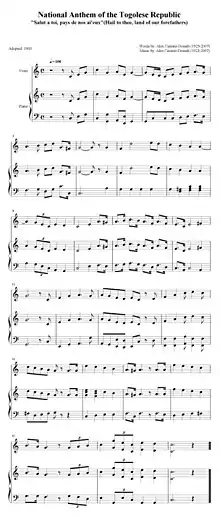 - ↑ "The Anthem Philatelist: The National Anthem of Togo". The Anthem Philatelist. 2010-08-08. Retrieved 2021-12-30.