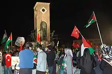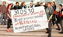 - ↑ "Thousands demonstrate across the world against Israel's Gaza flotilla raid". Haaretz. Israel. Retrieved 12 May 2012.