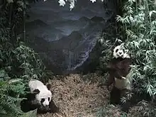The upper basement contains five dioramas of Asian animals threatened with extinction: snow leopards, orangutans, giant pandas, Indian rhinoceroses, and tigers.