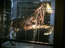 In particular, the hippopotamus has a particular history: it is a female specimen, purchased by the Gonzaga in the early seventeenth century, who exhibited it in the Ducal palace in Mantua with the mummy of Rinaldo Bonacolsi on horseback. Around 1700, Rinaldo's mummy was thrown into Lake Mantua and, in 1783, the Austrian government decided to have the hippopotamus brought to the Pavia museum.[5]