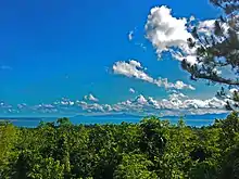 Mount Naujan, elevation 1,380 feet (420 m) and one of the inactive volcanoes of the country, is situated northeast of the geographic center of the lake. Several thermal springs and solfataras are reported to exist on the eastern border of the Naujan Lake.[4]