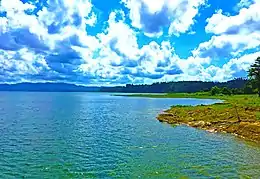 The lake, approximately 8,125 hectares (20,080 acres) in area, is the main feature of the protected area classified as a national park known as the Naujan Lake National Park (NLNP).[6] The lake and adjoining areas totaling 21,655 hectares (53,510 acres) was declared a national park on March 27, 1956 through Proclamation No. 282 by President Ramon Magsaysay.[7]
