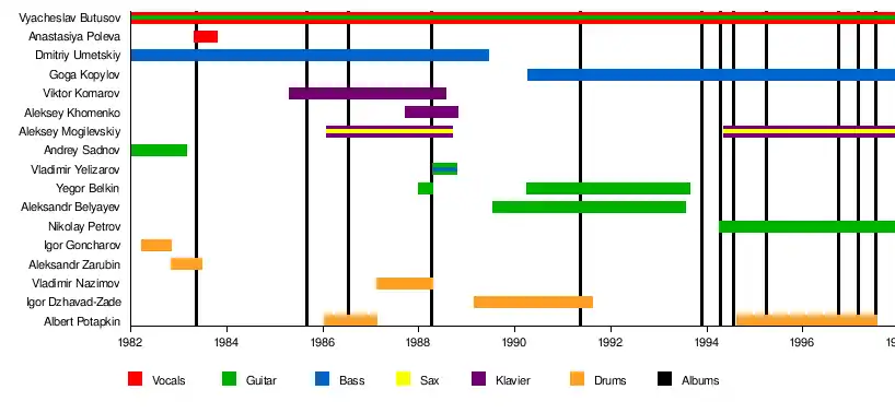 | Past members | Vyacheslav Butusov Dmitry Umetsky Ilya Kormiltsev† Aleksey Mogilevsky Nikolay Petrov† Albert Potapkin Andrey Sadnov Igor Goncharov Aleksandr Zarubin Anastasiya Poleva Viktor Komarov Vladimir Nazimov Aleksey Khomenko Yegor Belkin Vladimir Yelizarov Igor Dzhavad-Zade Aleksandr Belyayev |