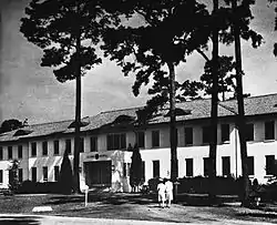 In view of the necessity for a Naval Hospital in this area, a hospital was authorized to be constructed by the NAVAL EMERGENCY FUND ACT[5] A contract was let with the Charleston Engineering & Constructing Co. to build the hospital.[6] Work commenced on June 1, 1917, and the hospital was commissioned on July 31, 1917, in spite of many difficulties encountered in obtaining enough labor and a minor strike among the carpenters. The hospital was the original Naval Hospital built on the site located on the Medical Department Property that was purchased in 1902. The hospital consisted of 19 temporary, wooden buildings with a bed capacity of 250. These buildings included one administration building, one office building, one building for women nurses, nine ward buildings, one galley, a mess hall, garage, laundry, power house, stores house, and recreation hall. These were all one-story buildings, owing to the increased patient load, additional beds were urgently required, and by September 1918[7] fourteen additional buildings were constructed which increased the bed capacity to 1000 beds. These additional buildings were of wood finished in stucco and were erected south of the hospital reservation. The hospital made use of an ambulance to transport the sick[8] from outlying stations of the Sixth Naval District and from vessels in the harbor to the hospital.