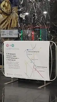 - ↑ "С 17 по 19 февраля не будет движения на участке Некрасовской линии между станциями «Электрозаводская» и «Нижегородская»" (in Russian).