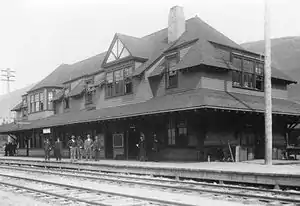 The Nelson station (located in Nelson, British Columbia, Canada) and was built by the Canadian Pacific Railway in 1900. The 2-story, wood-frame, railway station is located near the lakefront to serve as an important meeting point between rail and steamboat transportation.[1] This station is no longer used as a passenger station and the building has been designated a national heritage railway station.[2] It is now home to the Nelson Chamber of Commerce, a coffee shop on the East end of the building, with the remainder still undergoing restoration. The station was also used by Great Northern Railway's Nelson and Fort Sheppard Railway.[3]