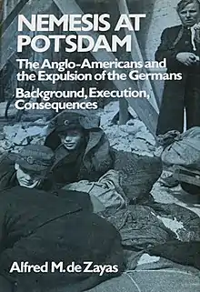 Nemesis at Potsdam: The Anglo-Americans and the Expulsion of the Germans is a 1977 book by Cuban-born American lawyer Alfred-Maurice de Zayas. Its title is drawn from Greek mythology; Nemesis is the Greek goddess of revenge. The book implies that at the Potsdam Conference (17 July to 2 August 1945) the victorious Allies of World War II took revenge on the Germans, resulting in significant territorial losses in Eastern Europe and the forced transfer of some 15 million Germans from their homelands in East Prussia, Pomerania, Silesia, East Brandenburg, Czechoslovakia, Hungary, and Yugoslavia.