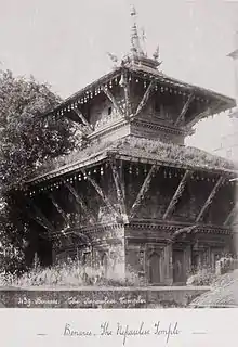 Shri Samrajeswar Pashupatinath Mahadev Mandir, also known as the Nepali Mandir (Hindi: नेपाली मंदिर), Kanthwala Mandir and Mini Khajuraho (Kanthwala in Hindi means wooden), is one of the oldest and most famous temples in the holy city of Varanasi. This temple has great religious importance in Hinduism and is dedicated to the Lord Shiva. Constructed in the 19th century A.D by the King of Nepal, the temple is made of terracotta, stone and wood and is replica of the Pashupatinath Temple in Kathmandu.[1][2][3][4][5]