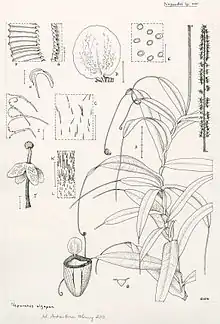 Nepenthes alzapan is a tropical pitcher plant native to the Philippine island of Luzon.[2] It is known from only a handful of herbarium specimens collected in 1925 from submontane mossy forest at an elevation of 1800 m above sea level.[2] It is closely allied to N. bellii and has similarly diminutive pitchers.[2]