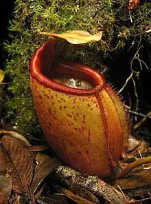 Nepenthes mira (/nɪˈpɛnθiːz ˈmɪərə/; from Latin mirus "wonderful") is a highland pitcher plant endemic to Palawan in the Philippines. It grows at elevations of 1550–1605 m above sea level.[3]