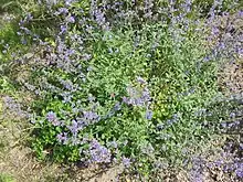 Nepeta grandiflora is a species of flowering plant in the mint family Lamiaceae, native to the Caucasus. Growing to 75 cm (30 in) tall by 30 cm (12 in), it is a clump-forming, erect deciduous herbaceous perennial with aromatic, slightly hairy, grey-green leaves, and spikes of purple/blue flowers in early summer.[3] Species of Nepeta are called catnip or catmint, with reference to their reported effect on some domestic cats. The plants seem to induce a euphoria in the animals, causing them to roll in the foliage and exhibit signs of intoxication.