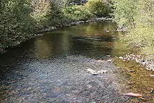 A creek known as Nescopeck Creek is in the vicinity of Nescopeck Mountain.[7] Additionally, Black Creek, a major tributary of Nescopeck Creek, empties into the larger creek at the base of the ridge.[8] The ridge is north of the creek for a portion of its length. There is a valley known as the Nescopeck Valley which is between Nescopeck Mountain and Buck Mountain. Nescopeck Creek flows through this valley. The valley is 20 miles (32 km) long and 5 miles (8.0 km) wide.[8] Some streams on the ridge are part of the Lehigh River watershed.[17]