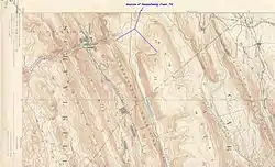 Twin sources of Nesquehoning Creek as Nesquehoning Mountain and Broad Mountain merge in the saddle above Tamaqua, Pennsylvania and below the drainage divide from the Little Schuylkill River below and west. (Image is rotated so east is at bottom)