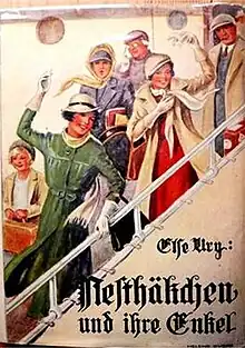 Else Ury's Nesthäkchen is a Berlin doctor's daughter, Annemarie Braun, a slim, golden blond, quintessential German girl. The ten book Nesthäkchen series follows Annemarie from infancy (Nesthäkchen and Her Dolls) to old age and grandchildren (Nesthäkchen with White Hair).[1] Volume 9 (1924) describes Anne Marie's life as her youngest child, Ursel, Ursel's husband and children, return to Germany after 16 years in Brazil.