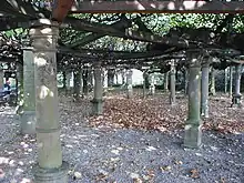 - Until April 1945 a huge lime tree stood near the castle outside the Gate Tower. It was reputed to be 1000 years old and lent the town its alternative name of Neuenstadt of the Great Lime Tree. The lime was destroyed by allied bombing during fighting near the end of the Second World War, but locals people found live shoots from the destroyed tree and grew new lime trees around the former lime. Their branches now form a shady garden, supported by approx 100 stone pillars donated by local citizens and aristocrats. The pillars in the garden were renovated between 1962 and 1981 and now bear the coats of arms of the manor houses of the Lords of Ehrenberg, the Lords of Berlichingen and the Lords of Gemmingen from 1557.