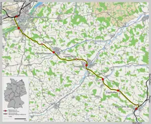 On 22 June 2007 the upgrade of the route to handle a top speed of 120 km/h was begun. That will enable, initially from December 2008, almost hourly services from Mühldorf to Landshut. In addition, the platforms at Vilsbiburg, Geisenhausen and Neumarkt-St. Veit will be raised to 55 cm.[2] In 2009 the platform of the halt at Landshut-Süd will be also raised to 55 cm. Additional measures to speed traffic up will mean that in December 2009 there will also be hourly services at the stops en route.