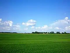 The Nevėžis Plain is heavily cultivated area (wheat, sugar beet, rapeseed, barley, potatoes) but significant part (20-30 %) is covered by forests (birch, aspen, oak, ash, pine, spruce trees).[1]