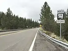 State Route 28 (SR 28) is a 16.3-mile (26.2 km) state highway in Douglas County, Carson City, and Washoe County in western Nevada, United States, that runs along the northeastern shore of Lake Tahoe. SR 28 connects U.S. Route 50 (US 50) in Douglas County with California State Route 28 at Crystal Bay. SR 28 has been part of the Nevada scenic byway system since June 1994 and the National Scenic Byway system since September 1996.[2][3]