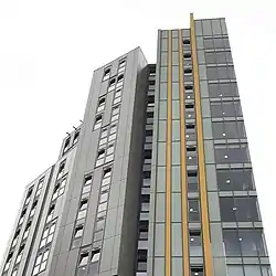 New Bridewell Tower (or New Bridewell) is a 16-storey student accommodation building located in Central Bristol, England. The £30 million development consists of demolishing the former 1970's New Bridewell Police headquarters and the construction of a 499-bed student accommodation building.[6] The development also includes a public square, which provides a link to the nearby old Magistrates court redevelopment, and 600 sq metres of commercial floor space and public realm improvements.[7]