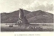 1798 engraving of New Eddystone Rock in George Vancouver's report to King George III.