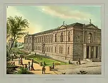 The Neue Galerie (New Gallery) is an art museum in Kassel in the state of Hesse, in Germany. The building was constructed between 1871 and 1877 as a museum for works of the Old Masters. The building was damaged and burned out on 22 October 1943 in a devastating air raid carried out on the orders of Winston Churchill. The 60 most important works were brought to Vienna, and were returned in 1956. The building and large parts of the collection were lost. The museum was reopened with its present name in 1976, and a large renovation was completed in 2011.