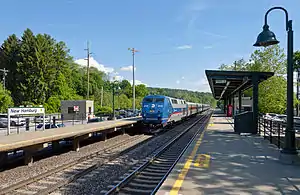 ![]() Poughkeepsie-bound Metro North train arriving at the New Hamburg station | |||||||||||