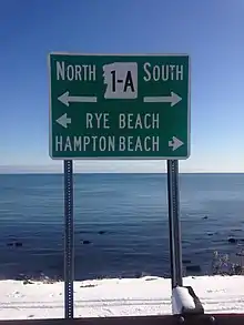 New Hampshire Route 1A is an 18.32-mile (29.48 km) long state highway located in southeast New Hampshire. The route runs along the Atlantic coastline from the Massachusetts border north to Rye, then turns toward downtown Portsmouth. The southern terminus is at the Massachusetts state line in Seabrook where it continues south as Massachusetts Route 1A. The northern terminus is at a junction with U.S. Route 1 in downtown Portsmouth. For the length of the road's run along the shore, its local name is Ocean Boulevard. In the northern part of Rye, it is known as Pioneer Road, and in Portsmouth, it is known as Miller Avenue and Sagamore Avenue.