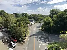 Continuing eastward along South Main Street, it enters Pohatcong Township where state maintenance begins.[2] At first, the road passes residential homes; continuing eastward, the highway enters a large residential district, with homes surrounding the highway for several blocks. At the intersection with County Route 519 (Saint James Avenue), the two routes head along a wrong-way concurrency, running along New Brunswick Avenue, passing the residential district and several schools. At that point, the residential district becomes more commercial, with County Route 519 heading to the south along Third Avenue. The route continues eastward along New Brunswick Avenue, returning to the residential portions of Pohatcong Township.[3] The route continues eastward, interchanging partially with U.S. Route 22, where the highway terminates. I-78 is located south of where the route ends.[4] New Brunswick Avenue continues ahead without a designation. New Brunswick Avenue continues named Dumont Avenue, it continues until it reaches County Road 519.[5]