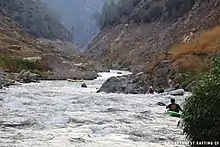 Although the 1964 floods had initially generated support for New Melones, a spirited opposition to the dam arose from both the river recreation industry and environmentalists who saw the Stanislaus River canyon as having greater value than a reservoir.[32] River runners protested the threat to the Stanislaus River, which was becoming one of the most popular whitewater runs in the United States, with the first commercial rafting company established in 1962 (see images of the river, rafting, and the canyon at the Stanislaus River Archive).[34] The river flowed through the deepest limestone canyon in the US, with cliffs rising 1,000 feet (300 m) above the water in places.[35] Other natural features of the area included extensive limestone caves, and endemic species such as Banksula melones, the Melones cave harvestman.[36] In addition, more than one hundred archaeological and historical sites, left over from Native American inhabitation and the Gold Rush period, were all situated in the reservoir flood zone.[37][38]