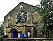 The area around Mellor and New Mills has a strong Methodist tradition. John Wesley first preached in the area in 1740, at a sheepfold at the Bongs in neighbouring Mellor.[4] He visited again on 28 April 1745, 12 May 1747 and 31 August 1748. The Wesleyan Methodists were established in 1748. At first, meetings were held in people's homes; then land was bought on the High Street for a Wesleyan chapel in 1766.[4] This was the first place of worship in the town. Wesley visited again in 1768, 1772, 1774, 1776, 1779, 1782 and 1788.[4] By 1808 that chapel was too small, and a larger one was built in St Georges Road, Brookside (Low Leighton).The church was influential and many of the millowners were members: Samuel Schofield, of Warksmoor House and of Torr Mill, the Armstrongs of Torr Vale Mill, the Hibbert family, including Robert Hibbert, of Warksmoor who built the first cotton mill in Newtown, the Barnes, Thatchers, Arnfields, Bridges, Willans and Bennetts, all industrialists, are buried in the chapel except Robert Hibbert who is buried at St Mary's Slough. The larger chapel was closed and demolished in the 1960s and the Methodists have reverted to the High Street Chapel.[4] The Association Methodists' stone chapel was erected in 1838, and the Primitive Methodists built one in 1827. The Friends Meeting House dating from 1717 is in Low Leighton, and the independents, the Congregational (Independent) church, "Providence", was built on Mellor Road, Whitle, in 1823.[25]