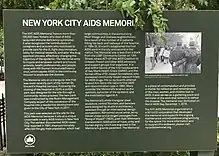 - ↑ Taylor, Jeff (1 December 2016). "New York City AIDS Memorial unveiled on World AIDS Day". LGBTQ Nation. Retrieved 12 January 2017.