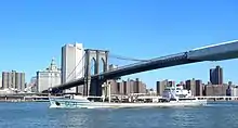 Metal, glass, plastic, and cartons collected citywide are taken to the Sunset Park Material Recovery Facility in Brooklyn.[17] Recyclables from the Bronx and Queens are taken there by barge. There the recyclables are sorted by eddy current separators and optical scanners, then baled for sale. Clear glass is sold to bottlers and colored glass is sold as construction aggregate. Roughly 15% of material entering the facility ends up in a landfill, either because it cannot be separated or is not economically recyclable.[22]