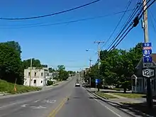The amount of development along the route begins to rise as the route approaches the city of Watertown. It passes several office parks and the northern access road to Salmon Run Mall on its way to an interchange with Interstate 81 (I-81) at the northwestern city limits of Watertown. The highway continues into the city,[3] where ownership and maintenance of the route shifts from the New York State Department of Transportation (NYSDOT) to the city of Watertown.[5] Within Watertown, NY 12F passes a mixture of commercial and residential areas overlooking the Black River, which rejoins NY 12F several blocks into the city limits. NY 12F and the river enter downtown Watertown soon afterward, where NY 12F ends at a junction with US 11 and NY 12 just northwest of the city's central business district.[3]