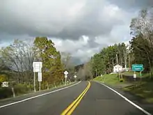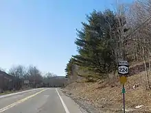 NY 224 was assigned as part of the 1930 renumbering of state highways in New York. Initially, the route began at NY 14 in Montour Falls and ended at NY 223 near the hamlet of Swartwood. From there, NY 223 continued east through the village of Van Etten to the village of Candor over what was previously designated as part of NY 53 from the mid-1920s to 1930.[2][4][5] NY 223 was truncated in the early 1950s to end at NY 224 in Swartwood. The former routing of NY 223 from Swartwood to Van Etten became an extension of NY 224.[6][7]