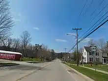 The Belmont–Alfred Station road was acquired by the state of New York in stages over the course of the early 20th century. In the town of Amity, the highway was improved under a contract awarded by the state on March 22, 1921. The ensuing project cost $161,802 to complete (equivalent to $4.91 million in 2024), and the rebuilt road was added to the state highway system on January 14, 1922, as unsigned State Highway 1559 (SH 1559).[5][6] The part east of Alfred was reconstructed in the mid-1920s as part of a project to connect the Alfred village center and Alfred Station by way of a state road. It was inventoried by the state as SH 1654.[5][7] In the 1930 renumbering of state highways in New York, SH 1559 and SH 1654 became part of NY 244, a new route extending from Belmont to Alfred Station. In between the two state-owned segments, NY 244 followed an unimproved road through the towns of Ward and Alfred. This segment was rebuilt by the state in the early 1930s.[2][8] This section became officially part of NY 242 in September 1932.[9]