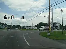 Now known as Turkey Farm Road, NY 29A continues southeast through Johnstown, becoming a two-lane residential street into the hamlet of Progress. After Progress, the route becomes more rural, soon crossing into the town of Mayfield. At the junction with Sandhill Road, the route re-enters dense woods and turns southeast through Mayfield, reaching a junction with NY 29 in front of the Holland Meadows Golf Course. This junction marks the eastern terminus of NY 29A in the town of Broadalbin.[3]