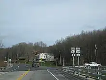 Paralleling the Mohawk River from a distance, NY 46 soon reaches a junction with the northern terminus of NY 274.[4] At NY 274, NY 46 turns northward near the abandoned Black River Canal[6] and crosses through the hamlet of Frenchville before reaching North Western. Running between the river and Buck Hill, NY 46 begins a northwest route through the town of Western, but changing directions at the hamlet of Hillside, where a connector to Western Hill Road (CR 76) is provided. Now running northward, NY 46 returns to the rural settings north of North Western and soon reaches the rural hamlet of Dunn Brook. Just north of Dunn Brook, the route crosses the town line from Western into the town of Ava. The stretch of NY 46 in Ava is very short and after one curve, the route crosses into the town of Boonville.[4]