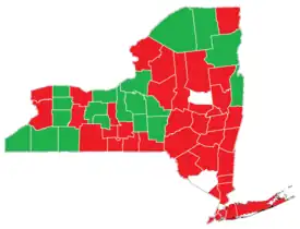 The referendum was most heavily supported by voters in Upstate New York. The Five Boroughs of New York City, as well as most of the area around the city, voted against the proposed amendment.[2]