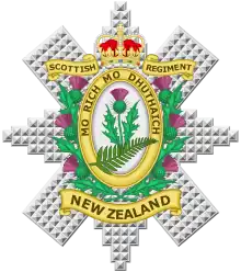 - 1 2 Pierce, Brett (2016). "End of an Era – Laying up of the New Zealand Scottish Regiment Colours" (PDF). The Red Hackle. 162. p. 30.