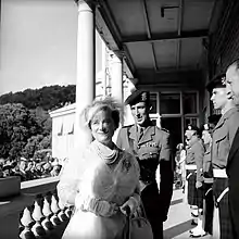 Discussions began in 1957 as to the award of colours to the New Zealand Scottish. As an armoured car unit, it was unclear if the regiment was entitled to a guidon (borne by mounted rifles) or a stand of colours (borne by infantry). It was decided that colours were most appropriate as they commemorated the regiments origins as an infantry regiment. The Governor-General, Sir Bernard Fergusson, presented the regiment with a stand of colours in 1963.[29]