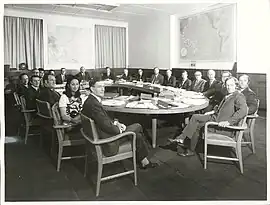The Cabinet secretary and their deputy are the only non-ministers who attend Cabinet meetings.[25] They are not political appointments and their role at Cabinet meetings is to formulate and record the Cabinet's decisions and advise on procedure, not to offer policy advice.[26] The secretary has a dual role as the clerk of the Executive Council where they provide a channel of communication and liaison between the Cabinet and the governor-general.[27][28]