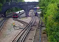 Trains also terminate here from White City 3 times an hour and use the crossover and siding to re-enter service westbound to White City. The siding is to the north of Newbury Park, accessible from both tracks near the station. Another crossover connects to the northbound track at the other end of the siding.[18]