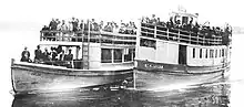The summer of 1913 was one of the busiest ever yet for tourism at Newport. As of August 4, 1913, over 3,500 persons had arrived at the city in the previous eight days.[20] Overcrowded trains on the Southern Pacific line to Yaquina City were reported to be running an average of an hour late.[20] It was said that the boiler on the Newport (which came from the condemned steamer T.M. Richardson) was too small for its engine.[20] According to a newspaper report, "throngs, herded like cattle on boats and barges, pass about an hour on a ride of three minus and a half across the bay when compelled to go to restaurants."[20] Reportedly hundreds of passengers had complained to the railway or the steamboat company, but nothing had been done to improve things.[20]
