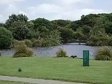 Lawn area outside visitor centre next to main lake
