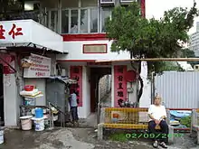 The entrance gate of Nga Tsin Wai Tsuen in September 2007. The Chinese characters, read from right to left, "慶有餘" (Hing Yau Yu) engraved on the granite stone above the entrance are said to be the handwriting of the Song Emperor.[1]