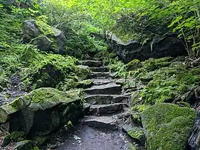 The glen is a prominent rock climbing area in Southern Ontario, being home to a large concentration of limestone boulders. In 2003, the Niagara Parks Commission recognized that people were using the area for climbing and there were debates about whether or not to allow the practice to continue.[2] Initial restrictions on bouldering were due to concerns about environmental protection.[3] In 2012, a bouldering permit system was developed jointly by the Niagara Parks Commission and the Ontario Alliance of Climbers to preserve climbing access, manage a significant growth in climbers and preserve sensitive vegetation adjacent to climbing areas.[2]