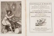 Son of Alessandro, a capomastro (builder) for St Peter's Basilica. In 1686, he began to work with the Fabbrica of St Peter. In 1743, with the help of the publisher Giuseppe Bottari and engraver Niccolò Pagliarini a book titled Castelli e ponti di Nic. Zabaglia, describing his engineering projects. It was republished in 1824 under the editorial supervision of Filippo Maria Renazzi.[1] Zabaglia is buried in Santa Maria in Traspontina.