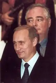 ![]() Iljine (far right) with Vladimir Putin at the Guggenheim in 2005 | |